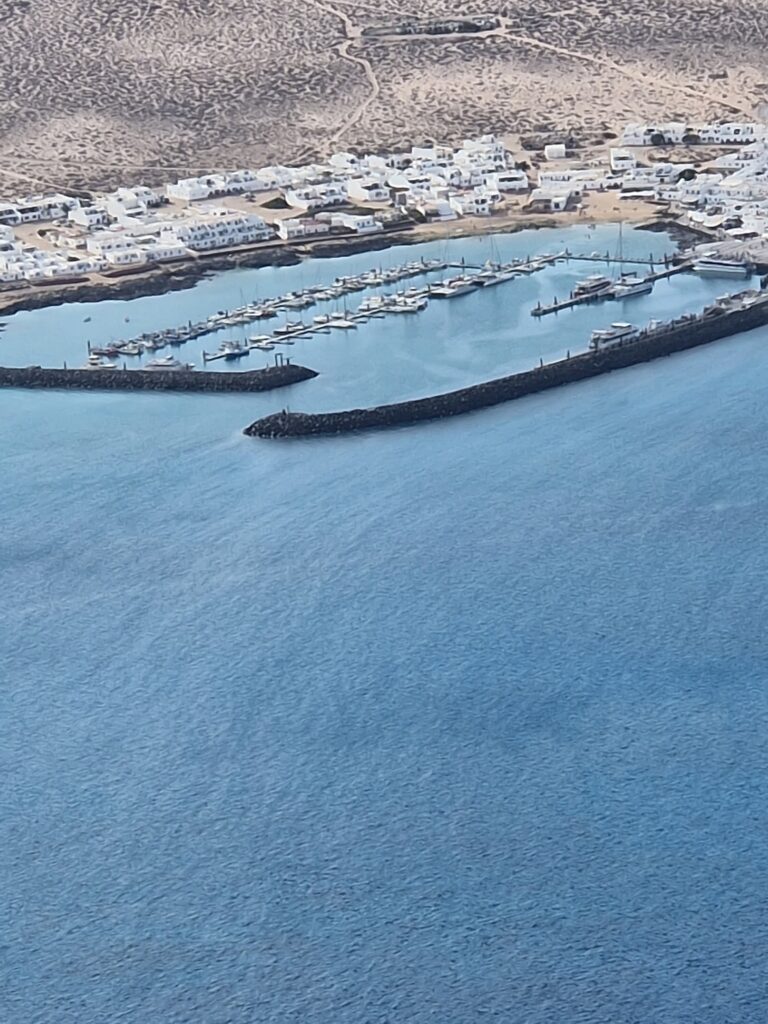El tercer día decidimos desplazarnos a Órzola y coger el ferry a la isla de La Graciosa. Era lunes y a pesar de ello la afluencia era alta. Sorprende ver que la isla es toda ella una playa, pero sobre todo sorprende ver el crecimiento de pisos turísticos en la isla. Comimos un buen pescado de la zona y al volver a Lanzarote realizamos una visita al municipio de César Manrique, Haría, recorrer un típico pueblo canario, agrícola y sobre todo de su emplazamiento entre volcanes y de los paisajes que se pueden disfrutar de vuelta a Arrecife. Antes y al volver de Órzola no se puede dejar de visitar las magníficas dunas volcánicas que te encuentras al borde de la carretera. Un espectáculo de otro planeta.
